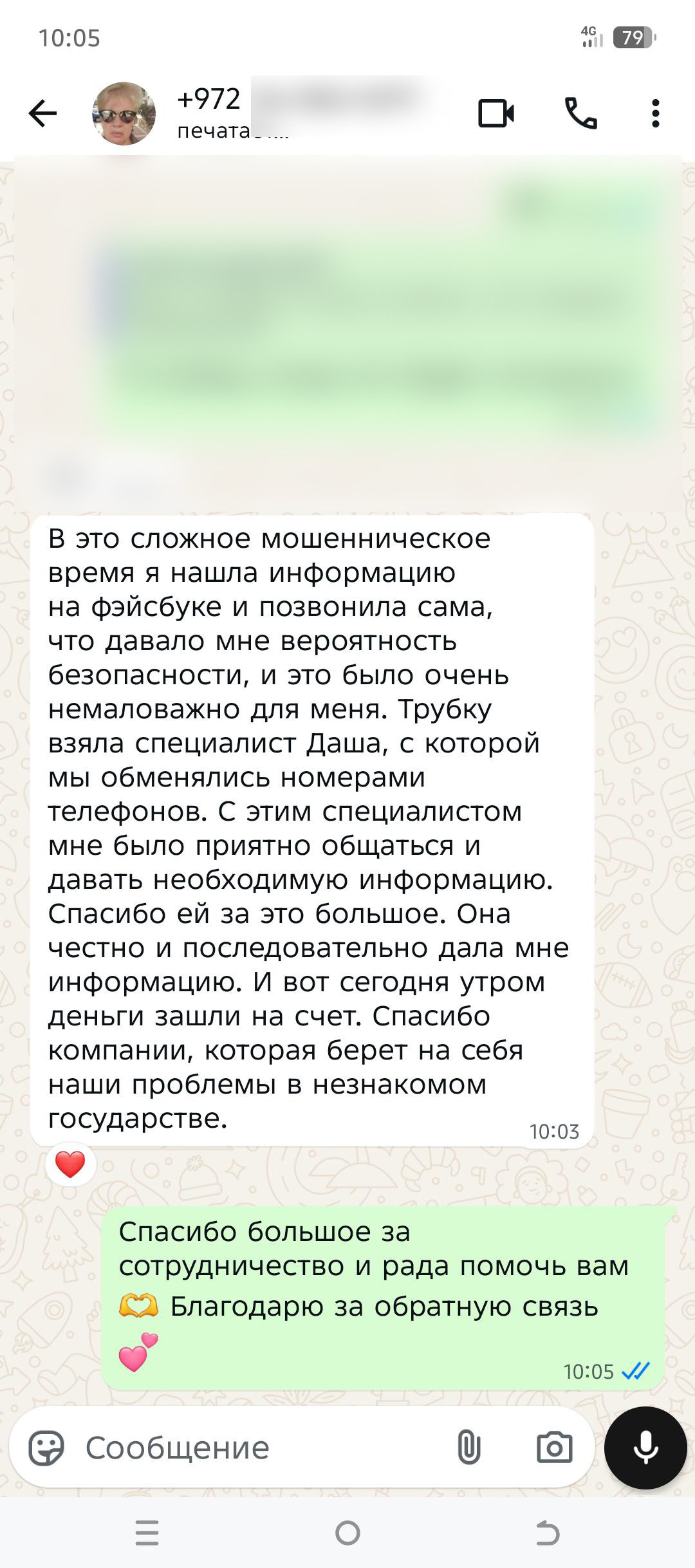 С удовольствием напишу свой отзыв. 1. Компанию выбрала по рекламе в Фейсбуке. 2. После обращения на связь сразу вышла Ирина. 3. Ирина поняла суть моего обращения. Подробно объяснила решение, какие необходимо сделать шаги, и какой ожидается результат. 4. После необходимой проверки мы заключили договор, условия которого были для меня приемлемы. Профессиональный подход, доброжелательное отношение это вера в успешное решение вопроса. Очень благодарна сотрудникам за отношение к своим клиентам. Здоровья и успеха.